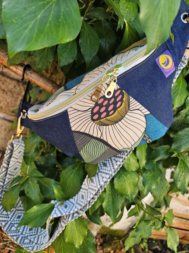 Banane Denim brut et imprimé lotus Idriss bleu - Taille S