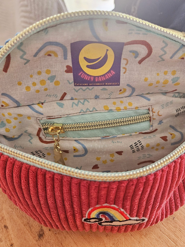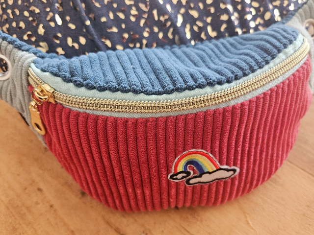 Banane forme classique - Collection Mini Funky - Velours côtelé framboise givrée / bleu paon / vert d'eau - Taille XXS