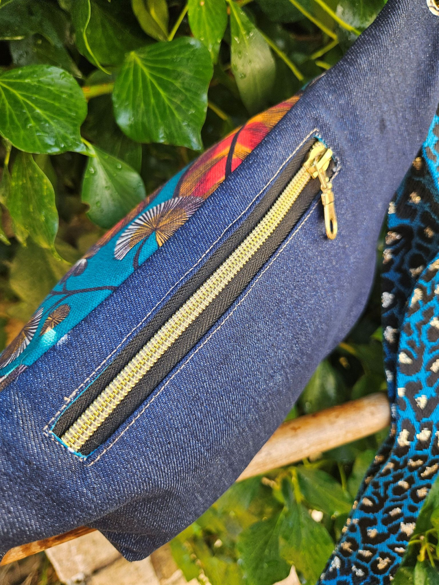 Banane forme classique - Collection Denim et Vitamines - Denim bleu brut et imprimé Rainbow tree Bleu vert - Taille S