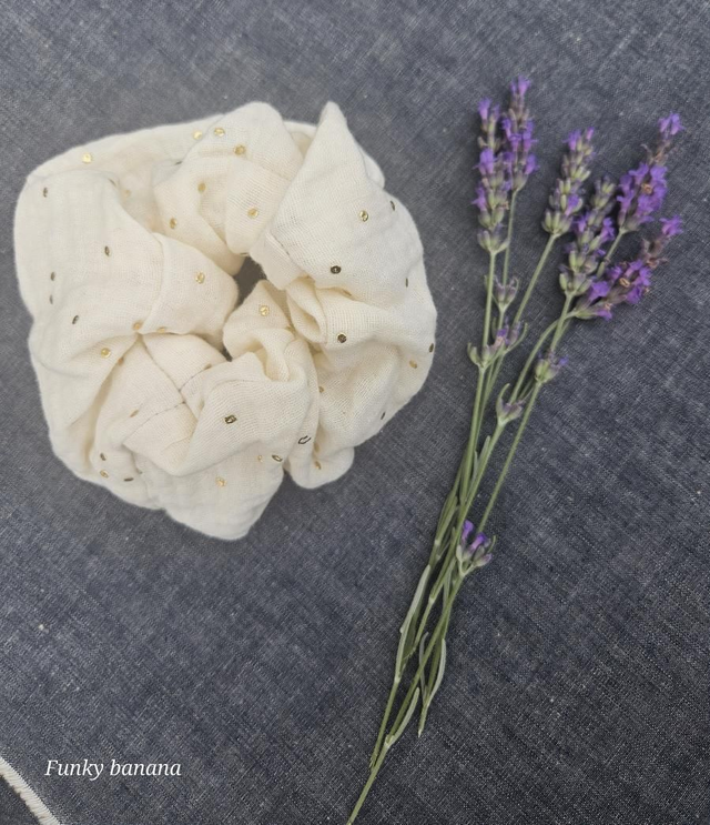 Chouchou double gaze noir et pois dorés