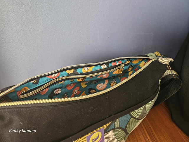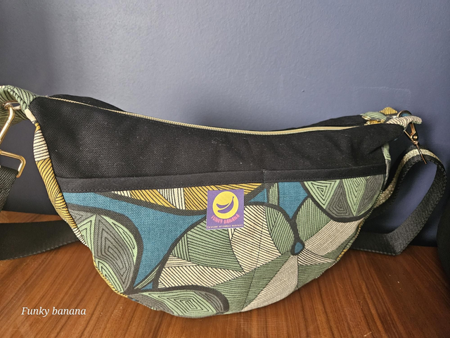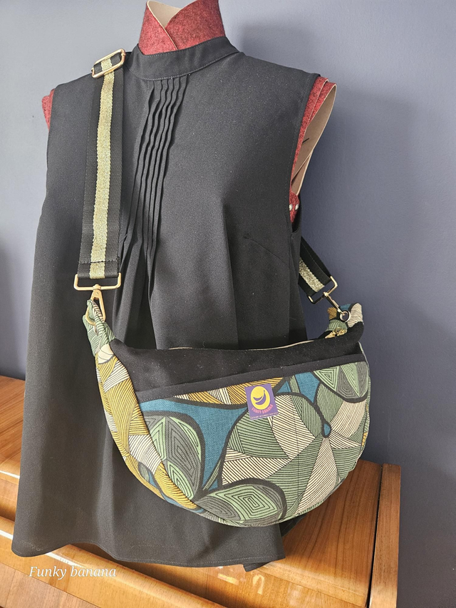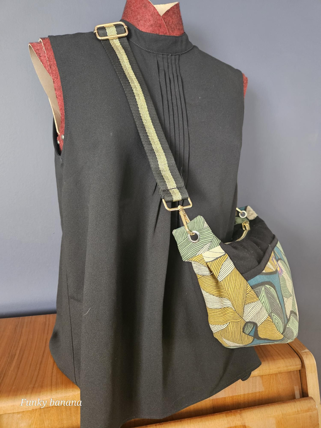 Coloris : noir, imprimé fleuilles de lotus sur fond bleu gris, zip noir et or