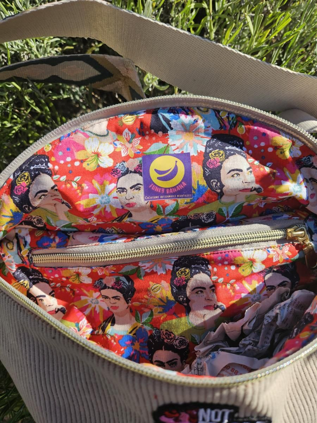 Banane classique Velours côtelé tricolore Barbapapa/beige/taupe - Écusson Frida Kahlo - taille M